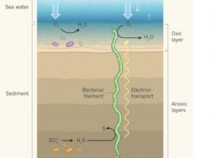 The fact that microbes produce electrical currents is not truly surprising. Electron transfer is fundamental to life, and as a consequence, biological systems have evolved the capacity to generate electrical currents across a range of spatial scales . In photosynthesis and cellular respiration, electrons are channelled over nanometer distances. Similarly, metal-reducing bacteria are known to develop conductive appendages, known as “nanowires”, which are capable of transporting electrons to solid electron acceptors outside the cell over distances up to 10 micrometers. Therefore, the real surprise is the length scale over which electrons can be transported. Long-distance electron transport inside cable bacteria operates on the scale of centimetres. This extends the known length scale of biological electron transport by many orders of magnitude.